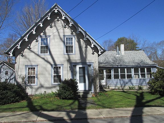 Circa 1850 Farmhouse with 100 ft of frontage on the Ashuelot River. The first floor features an eat-in country kitchen with custom cabinets, pantry, mudroom w/laundry, formal dining room with tin ceiling, living room with decorative molding, bedroom and 3/4 bath. The second floor offers 2 nice sized bedrooms, space for an office, and full bath with soaking tub. Wood floors and doors. Keep cool with Central A/C. Enclosed front porch. Replacement windows, updated electrical panel and metal roof. Covered parking. Attached workshop. A lovely lot with an extensive variety of perennials/berry bushes/shrubs, garden space, river views and pathway to the water where you can launch your kayaks, plus space for a bench or gazebo. There's even a view of the Denman Thompson Covered Bridge. Convenient location close to shopping/dining and just 4 miles to Keene. Showings BY APPOINTMENT begin Friday May 3rd. FEMA website shows that home is not in a flood zone.
