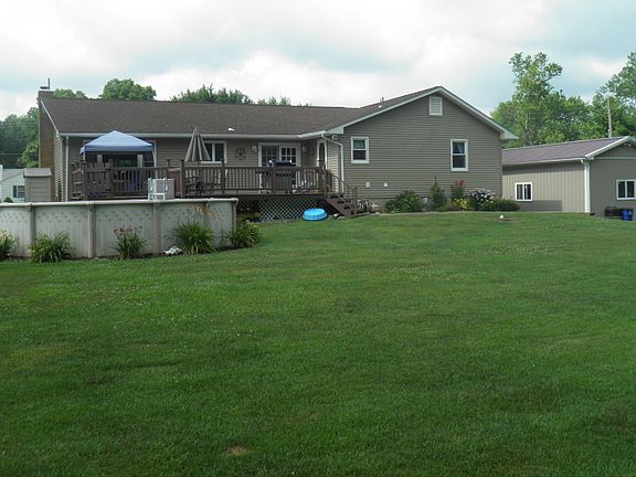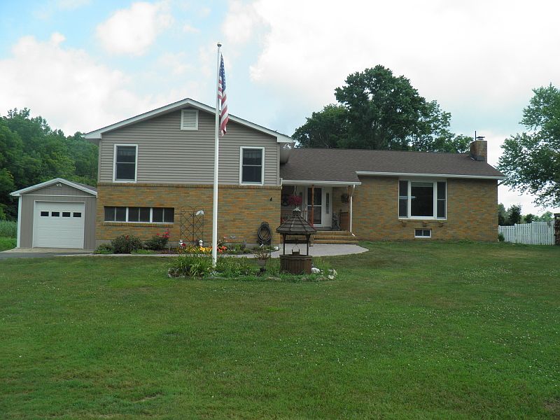 Spacious Split Level, Large Master BR, office area in MB, MB has full bath, Large eat in kitchen with new pantry, French doors lead to composite deck and above ground pool. Sidewalk from deck toside of house, Basement partially finished and comes with projector and 106" screen. Large storage area in basement, 16x30 detached garage with cable & electric. Generator plug outside garage door, AG oil tank in basement, water softner and purification system. House is ready for you to move in. Its a MUST see, is much larger than it looks.