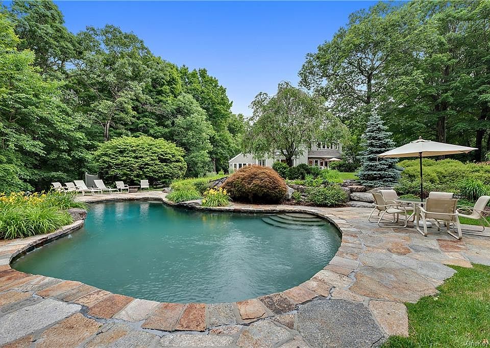Long drive to perfect privacy on nearly nine acres surrounded by more than 38 acres of conservation land. Sophisticated Country Contemporary with easy, open floorplan. Great flow for formal entertaining and relaxed living. 5040 square feet of sun-filled living space with walls of windows to capture light and views. Spacious Living and Dining Rooms. Open concept Kitchen and Family Room. Doors to Ipe Deck, perfect for indoor-outdoor living and al fresco dining. First floor Den plus spacious Guest Suite with private Terrace. Four additional Bedrooms including private Master with Sitting Room, Dressing Room and updated Bath. Gorgeous flowering gardens. Stone terracing surround the Swimming Pool and separate Spa. All amenities including central air, generator, irrigation and landscape lighting. The perfect retreat!
