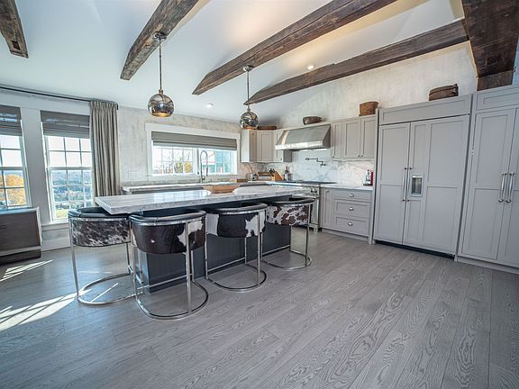 Unparalleled views and a slope side location is just the preamble of the story to this stunning ski home at the prestigious Hermitage Club. Carefully curated construction and attention to detail is found in every corner of this 5,000+ square foot home. Amazing chefs kitchen looks out over the slopes and a vast mountain range while boasting the finest of appliances, cabinetry and counters. The wall of windows illuminates the open concept first floor and truly brings in the outdoors. Cozy up by the DaVinci fireplace after a day of skiing, just one of six gas fireplaces this home has to offer. Private, large and very luxurious master suite also has long range views, fireplace, large white marble master bath with steam shower, walk in closet with wooden closet system and plenty of space for a sitting area to take it all in. Six bedrooms in total, five and one half baths, gorgeous flooring throughout, air conditioning, heated garage, hot tub, fire pit area, sauna, huge mudroom with plenty of storage, bunk room that can accommodate a large sleepover, first floor guest room with en suite bathroom, two wine refrigerators, custom wall treatments and so much more. A must see for slope side living.