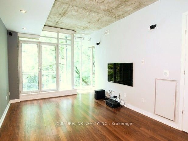 Discover sophisticated urban living in this rarely available one-bedroom residence, featuring soaring 10-foot ceilings and a sleek Scavolini kitchen accented by a premium Grohe faucet. The open-concept living area is equipped with a five-speaker Bose surround sound system + Samsung wall-mounted TV, creating the perfect atmosphere for relaxation or entertaining. Step through elegant glass French doors onto your private balcony, where serene, tree-lined views offer a peaceful escape from the city buzz. The bedroom includes a ceiling-mounted Samsung TV and a spacious walk-in closet with custom California Closets. It comes furnished with a double bedframe, boxspring, and mattress-available to keep or remove based on your preference. The modern spa-inspired bathroom features a Toto toilet and a luxurious waterfall shower. Enjoy the comfort and exclusivity of this quiet 59-unit boutique condominium in one of the city's most sought-after locations. Steps from Toronto's finest dining, shopping, and entertainment.