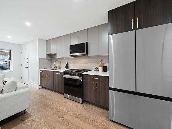 Stunning new condo in a historic restored building with private entrance in the heart of McGinley Square! This stunning brand new home boasts three bedrooms offering flexibility for your lifestyle needs. Step inside and be wowed by a thoughtful design, showcasing a blend of style and functionality. The open-concept living area features stunning hardwood floors that flow seamlessly throughout the space. The kitchen is a chef's dream, complete with sleek quartz countertops, custom two-toned cabinetry with gold channels and Samsung appliances, including an integrated dishwasher for a seamless look. Bathrooms are complete with sleek tiles, soaking tub and enclosed glass shower. Embrace the outdoors on your 550 sf private patio and green backyard located off the primary bedroom perfect for morning coffee or evening cocktails. Comfort is key with central air conditioning, in-home laundry and recessed lighting throughout, creating a welcoming ambiance in every room. The attention to detail in this renovation is evident in the custom lighting fixtures that add a touch of sophistication. This vibrant neighborhood is booming with new restaurants and cafes such as Krewe, Marty's, Ita, Cafe Alyce, La Brujeria and Snapdragon Cafe, local bars, farmers markets and ample green spaces including Liberty State Park, Lincoln Park and the new Fairmount Park directly on your corner making it a great place to live, work & play. Enjoy an easy commute to NYC by being only .9 miles to the JSQ PATH or catch one of many frequent buses on the corner. With its quality build, modern amenities, and prime location, it's the perfect place to write your next chapter. Don't miss this opportunity to make this home your own! Low HOA fees!