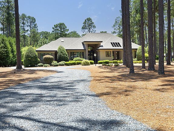 Lovely golf front home located in Pinewild that features mostly main level living with attractive features throughout. Custom built by Jackie Speight, the home has been well maintained through the years that offers 3 bedrooms and 3.5 baths (all ensuite baths) with 2,946 heated feet. Upon entry you will see the Brazilian cherry floors and vaulted ceilings. There is a formal dining room for all of your special occasions and a large living room that overlooks the golf course. The screen porch has Eze Breeze panels creating a three season space ideal in Pinehurst. The outdoor patio will be great for entertaining friends and family. The home has mature landscaping on a .76 acre lot along with a transferable Pinewild CC membership.