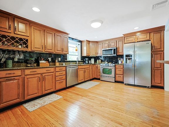 Nicely maintained split-level home, offering a harmonious blend of comfort and versatility. The main level features a spacious kitchen that opens into a bright four-season sunroom then to an expansive deck Down the hall are 3 bedrooms and a full bathroom with a primary bedroom boasting its own en-suite bathroom. Downstairs, the expansive family room offers ample space for gatherings, while an additional room with a kitchenette and full bathroom serves as an ideal guest suite, home office, or potential fourth bedroom. Upgrades include newly installed (2024) central heat pump system with a mini-split system in lower level and hot water heater The property also features a two-car garage with a 200-amp electrical, roof ~19 years.