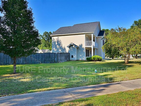 Awesome 3 bedroom, 2.5 bath home in the Woodtrace subdivision in Elgin. Large lot with covered front porch and 2-car garage. Spacious, privacy-fenced backyard with oversized patio. Real hardwoods in the two-story foyer. Living room off entry has a ceiling fan and gas-log fireplace open to dining area. The kitchen has a bay window eat-in area, walk-in pantry, and included smooth-top stove, built-in microwave, dishwasher, and refrigerator. Half bathroom off kitchen. Upstairs master suite has vaulted ceilings, arched window, and full bathroom with tile floors, built-in shelving, garden tub, separate shower, and walk-in closet. Balcony off master also accessible from 2nd bedroom. Additional bedroom, 2nd full bath, and full-size laundry room also upstairs. Convenient to I-20, Ft Jackson, and Sandhills Shopping. Kershaw 1 schools.