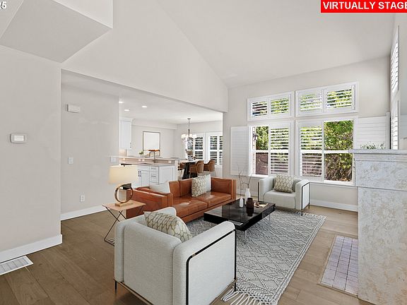 Welcome to Mountain Park, where forested trails, community charm, and convenience come together. Tucked at the end of a quiet lane, this light-filled end-unit townhome offers exceptional value in one of Lake Oswego’s most beloved neighborhoods. Step inside to soaring vaulted ceilings, picture windows framed with plantation shutters, and an airy open-concept layout. The main level invites gathering and everyday comfort, flowing from the updated kitchen - complete with quartz countertops, stainless steel appliances (including a smart oven), custom cabinetry, and eat-in peninsula - to the living and dining spaces that open directly to a private greenspace patio. You’ll also find a convenient half bath, laundry room, and plenty of storage on the main level. Upstairs, two bright bedrooms await, including a generous primary suite with a walk-in closet and ensuite bath. The attached two-car garage provides abundant space for parking, hobbies, or additional storage. Lovingly maintained and ready for your finishing touches, this home is an opportunity to move into Mountain Park at an incredible price point. Residents enjoy miles of wooded trails, pristine parks, and exclusive access to the Mountain Park Rec Center with a fitness center, pool, tennis courts, and year-round activities. Just minutes from downtown Lake Oswego and Portland, it’s the perfect blend of tranquility and connection. Come make this space your own and experience all that Mountain Park has to offer!