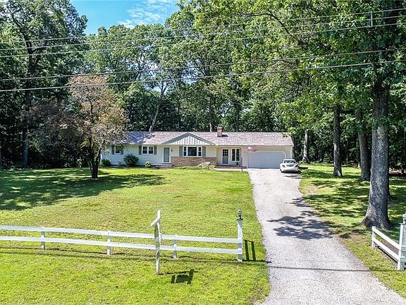 Well maintained Ranch nestled in neighborhood 3 bedrms, 2 full bathrms solid construction gleaming hardwd flrs oversized windows allowing natural light. Upon entering the home you are greeted a masterful stone fireplace that stretches floor to ceiling & is flanked by customized shelving along a bay window overlooking your generous front yard showcasing its master masonry touches that are displayed in its front paver patio & walkway. Beautiful private backyard with paver patio to enjoy summer days. Eat-in kitchen provides plenty of cabinet space, mudroom resting between the attached 2 car garage & kitchen. Well maintained lower level is great for storage but ideal for you to turn this blank canvas into extra living space. Newer septic tank, 200 sq feet in heated breezeway included in sq ft.