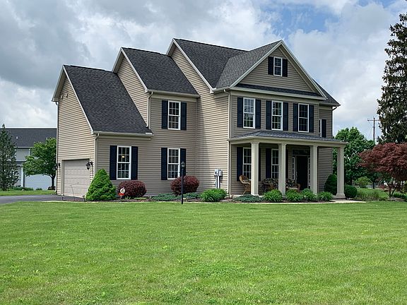Highly sought-after community of Smoketown Fields, Lewisburg Schools - adjacent the middle school sports fields & Linntown. Gorgeous curb appeal. Deep front porch, stately pillars. Graciously poised on a beautiful half acre, corner homesite. Over 3,400 SF of gorgeous living space. Stunning two story foyer features elegant, sun-filled staircase with oak treads, risers & banister. Gleaming hardwood floors in the foyer, formal dining room & great room compliment this sensational open plan. Earthstone tiled eat-in maple kitchen features solid cabinetry, Corian countertops, seamless sink, breakfast bar and a huge pantry. Pull outs, corner cabinet turntables, extended height upper cabinets, smoothtop range, built in glass china cabinet. This kitchen is truly the heart of the home with views into every room on the first floor. Vaulted sunroom filled with windows galore, Tommy Bahama style ceiling fan, wood blinds and a gorgeous two-sided fireplace flanked with deep arched openings leading into the spacious great room. Superior owner suite, opulent 5 piece bath features walk-in tile shower, 2 person jetted tub with tile surround, water closet, double bowl 8' vanity, enormous walk-in closet. Generous bedroom sizes, walk-in closets, ceiling fan lights. Main bath features double bowl vanity and separate tub/shower area for added privacy. Second floor laundry room. Professionally finished lower level. Twisted berber carpet with custom built cherry trophy cases featuring led lighting, built in media components, abundance of recessed lighting, dimmers. The billiard room features high density, embossed LVP barnwood style flooring and an additional gaming area for cards, art projects or play area. Unfinished storage has a wall of sturdy built-in storage shelves. The double width driveway can accommodate up to 7+ cars. Underground fencing. Healthy abundance of varietal shrubs, ornamental grasses and perennials surround each side. Flowering trees paint the edges of the over-sized rear patio in early spring. You’ll love this walkable community. Minutes to rails to trails, grocery stores and the storybook setting of Bucknell University and the downtown boutiques, reputable antiquing, and delicious eats. If you are looking for an extraordinary home, location and amenities, this is the place for you! Seller is a licensed agent.