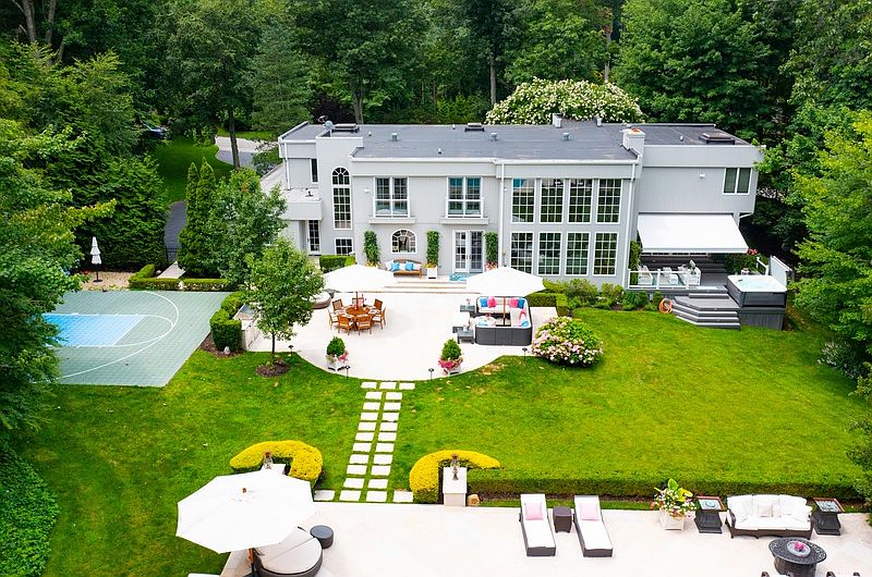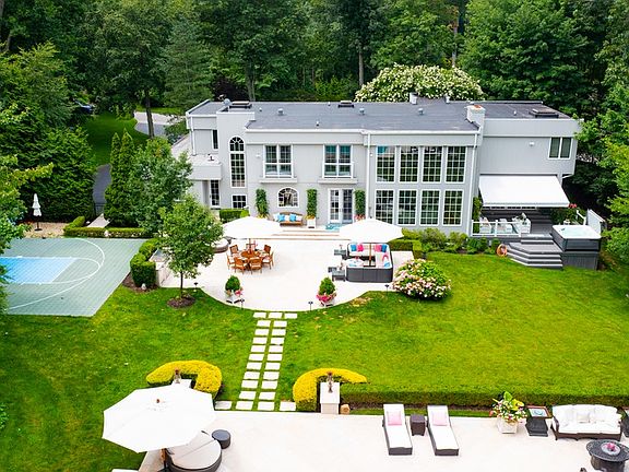 Situated in Oyster Bay Cove's prestigious private development of Tall Oaks, this 5 Bed ; 5.5 Bath ; 4600+ square foot home sits on 2+ acres of privately secluded property. Step inside this incredible home through a double height entry foyer, walls of oversized windows lead to a sun-filled great room with fireplace. A gourmet chefs kitchen features an oversized center island w seating & abundant custom cabinetry leads to a formal dining room with coffered ceilings. This home boasts the finest amenities with a stunningly appointed sports bar w/ wetbar, refrigeration and access to an outdoor veranda with a jacuzzi. The lower level gives access to a fully finished basement with glass enclosed wine cellar, arcade and media room! The meticulously maintained backyard creates an oasis w a full outdoor covered kitchen & dining area, an inground gunite pool with direct access to an in-home cabana! A true paradise in Cold Spring Harbor Schools!