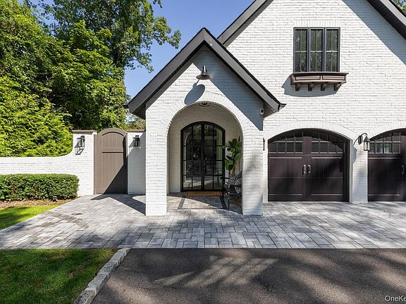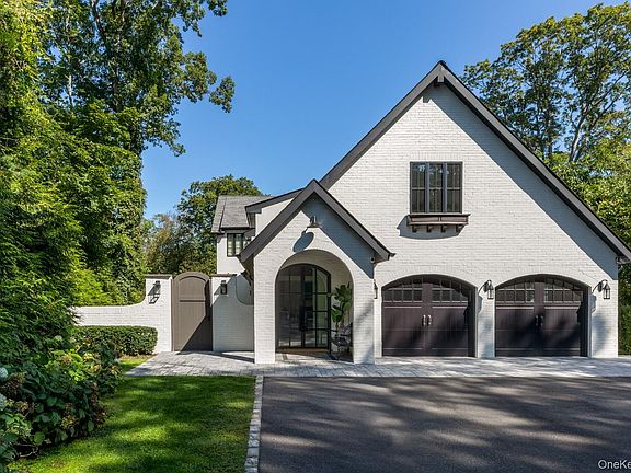 Located within the Cold Spring Harbor School District, this custom-built modern Tudor where timeless architecture meets today’s design. A dramatic grand foyer with soaring ceilings and floor-to-ceiling windows sets the tone for the home’s elegant style. The open-concept great room impresses with vaulted ceilings, exposed beams, and wide-plank engineered wood floors, seamlessly connecting indoor and outdoor living. At the center, the chef’s kitchen showcases an oversized island, custom cabinetry, quartz countertops, and top-of-the-line Wolf and Sub-Zero appliances. The main level is thoughtfully designed with two spacious bedrooms and 1.5 baths, providing comfort and flexibility for guests, home office, or multi-generational living. An attached two-car garage adds everyday convenience. The primary suite offers a serene retreat upstairs, with tray ceilings, oversized windows, and a spa-inspired bathroom featuring dual vanities, a glass-enclosed shower, and contemporary finishes. The finished walkout basement expands the home’s living space, with a full bathroom, highlighted by a custom-built bar with rich wood tones, modern shelving, and stylish seating. This area flows into a lounge/media room with direct access to the pool and backyard. Outdoor living is extraordinary, offering three distinct experiences in one private setting: a resort-style pool with sleek stone patios and lounge areas, play zone seamlessly integrated into the landscape, and a covered entertainment deck with dining space and hot tub for year-round enjoyment. An elevated stone patio with a built-in gas firepit completes the picture—the perfect setting for entertaining or quiet evenings. Blending classic Tudor charm with modern sophistication, this one-of-a-kind residence offers privacy, luxury, and convenience in the sought-after Cold Spring Harbor community.