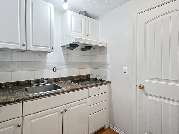 - Sleek modern kitchen with fridge and stove top and plenty of cabinet storage for easy organization