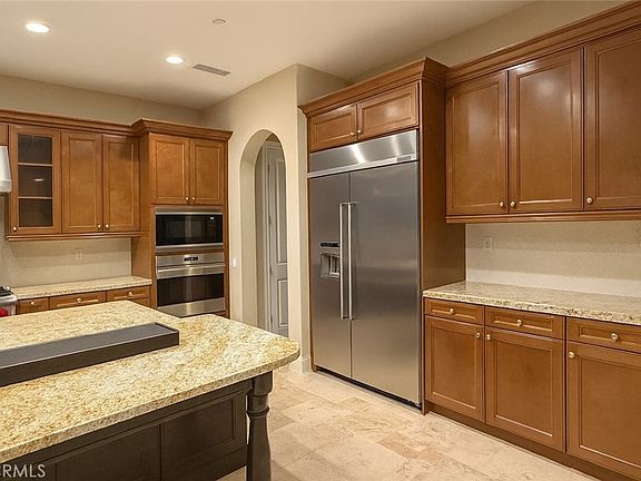 Located in the picturesque Orchard Hills community of Irvine, this impressive Tuscan-style residence showcases an elegant stone exterior and grand arched entryway. A sweeping staircase and exquisite limestone flooring create a spacious and sophisticated atmosphere.The chef-inspired kitchen is equipped with top-of-the-line stainless steel appliances, surrounded by Lapidus natural stone countertops and a center island, complemented by a herringbone tile backsplash. Solid maple cabinetry with a rustic glazed finish adds refined detail throughout.A formal dining room and en-suite bedrooms provide comfortable and private living spaces for family and guests. Outdoor living is equally exceptional, featuring a stunning courtyard, loggia, and patio that together create a perfect private retreat.The community offers exceptional amenities and is conveniently located near parks, trails, shopping, and highly acclaimed schools.