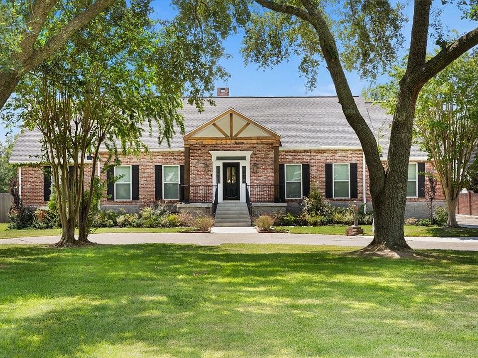 Breathtaking traditional home situated near the lake is an entertainer's delight! So much CHARM! Replete with formal living, formal dining, custom cabinetry, two primary suites, a huge den / game-room with a vintage bar and barstools, a pool house and shop, this home is literally above the rest! Completely remodeled primary suite. 2 HVAC systems. New landscaping & irrigation system (Rachio brand). Gas fireplace, 2 gas water heaters for the home. Pool is 10' deep, 30k gallons, in-ground gunite with a chlorine system. The pool house measures approximately 1,000 sq feet and has a complete kitchen, bath and bedroom & a 3rd gas water heater. The home was recently raised 4' by FEMA due to past issues so buyers must carry flood policy in perpetuity (current premium is only $971 / flood zone X). There is a pool table that stays with the home. (AAA Billiards to reassemble for buyers if desired!) City water. Septic system. Large rock in front is the backflow preventer. Neighborhood boat launch nearby There is a NEW SAUNA housed in the shop! DON'T MISS THIS ONE.