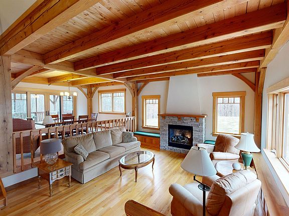 Nestled on 10 picturesque acres in Jericho, this stunning post-and-beam home offers seasonal breathtaking sunsets over the Adirondack ridgeline. Designed with beauty & functionality in mind, the home features a durable standing seam roof & exquisite custom woodwork throughout. The expansive kitchen is a chef’s dream, boasting cherry cabinets, new appliances (Nov. 2024), spacious pantry with a breakfast bar, & plenty of room for entertaining. Step outside onto the lg custom deck with Ipe decking & elegant cedar railings, perfect for taking in the serene surroundings of a lg private backyard. Inside, the sunken living room is a cozy retreat, complete with a gas fireplace set in a stone surround with a custom solid cherry mantel. The great room impresses with soaring vaulted ceilings, enhancing the open-concept design & inviting ambiance with hardwood floors. A/C heat pumps for year-round comfort augmented by a Jotul gas stove in the basement. Convenience meets charm with a 1st floor laundry & thoughtful details throughout. The 24’ x 32’ detached garage is insulated & climate controlled with heat and A/C. The 14kw standby generator has an automatic transfer switch for peace of mind during the occasional power outages. Lovingly maintained by its original owners, this home is just minutes from skiing & all of Jericho’s beloved local spots, including the Jericho Tavern, Snowflake Chocolates, & Palmer’s Ice Cream. Don’t miss the chance to own this one-of-a-kind Vermont retreat!