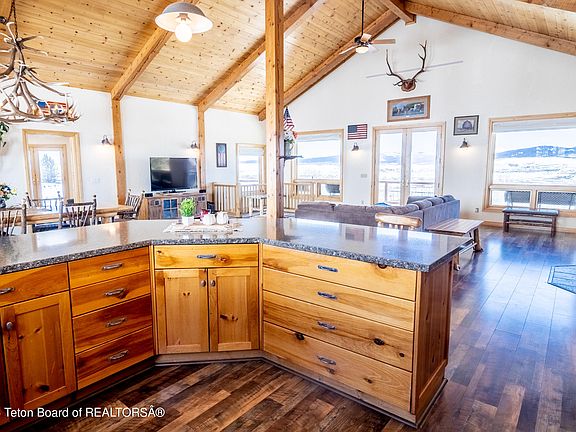 ** MOTIVATED SELLER ** Welcome to the ultimate mountain retreat in the Kendall Valley, where luxury meets nature! This stunning mountain modern home is nestled on 11+ acres, offering breathtaking views of the Wyoming range and Sawtooth Mountains. With 4 bedrooms, 3 bathrooms, spread over 4,600 sq. feet, this home offers the perfect blend of comfort and style. Step inside this mountain retreat and be greeted by the spacious living room, featuring a cozy pellet stove, hydronic in-floor heating, and large windows that let in natural light and showcase the stunning views. The open floor plan seamlessly connects the living room to the gourmet kitchen, which is equipped with state-of-the-art appliances, custom cabinetry, and sleek countertops. Looking for some R&R? Look no further than this home's amazing amenities! The Tylo sauna & spa like wet room are perfect for relaxing and rejuvenating after a long day. The recreation room boasts a custom wet bar and buffalo nickel inlaid billiard table, providing hours of entertainment for you and your guests. If outdoor living is your thing, then this home is sure to impress! The 12x16 heated, ventilated greenhouse is perfect for fine tuning your gardening skills and the 3616 sq ft. 4 bay shop has plenty of room to store all the toys! This mountain retreat also offers convenient access to the Bridger National Forest, Green River Lakes, New Fork Lake, Dollar Lake, and the Green River. Whether you're an outdoor enthusiast or simply seeking a peaceful escape from the hustle and bustle of everyday life, this home has everything you need and more. Don't miss out on the opportunity to experience the grandeur of the Kendall Valley in this luxurious mountain home. Contact us today to schedule a private tour and see for yourself what makes this property so special!