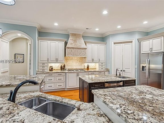 Nestled on a private cul-de-sac in Long Cove Club, this exquisite home blends luxury, privacy, and stunning views. High-quality craftsmanship and custom finishes abound throughout. The expansive great room flows into a chef’s dream kitchen with top-tier appliances, stone and hardwood flooring, and elegant detailing. A private office/den and an enormous bonus/media room offer versatility. Enjoy year-round indoor-outdoor living with a large covered porch as well as a screened-in porch with built-in grill. With golf course and serene lagoon views, this exceptional home is a true Lowcountry retreat.