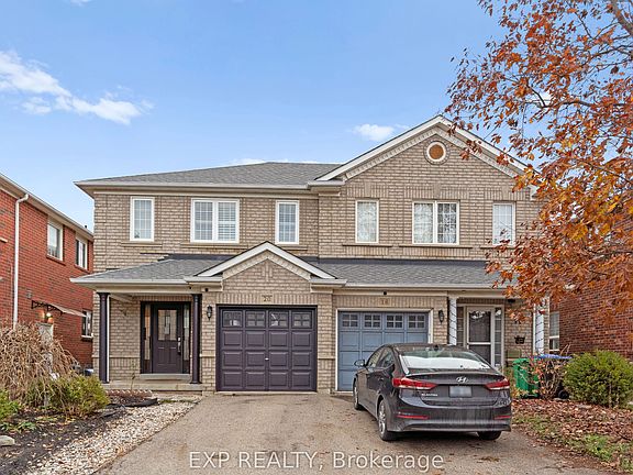 Desirable 3 bedroom semi-detached home in a prime location. Newly painted with a spacious eat-in kitchen featuring quartz counters, ceramic backsplash. Main floor with hardwood flooring throughout. Primary bedroom includes a 4-piece ensuite, (2021). Basement renovated (2025). Updated Appliances. Front glass door and rear sliding door replaced (2021). Backing onto school greenspace. No homes directly behind. Conveniently located within walking distance to schools and other amenities. Roof (2018)