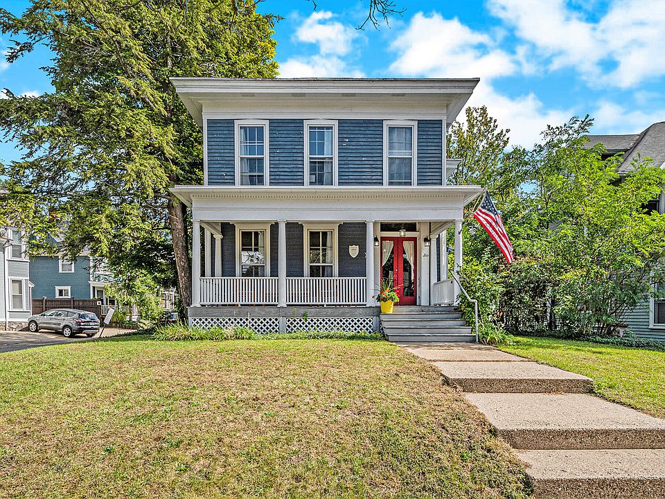 Stunning Heritage Hill home with over 2,800 square feet with the original character, charm and detail so expertly crafted indicative of its day. Step in to the classic foyer with 11' ceiling and a handsome curved stairway that adds to the ambiance of this incredible home. French doors invite you in to the spacious living room that is adjacent to a large dining room. The kitchen has been updated with tile floor/back splash, quartz counter, plentiful cabinets, Jennair stainless appliances and a Michigan pantry. A flex room could be utilized as a bedroom/study/office and full bath complete the main level. The upstairs boasts a master suite with a large closet, attached bath with tile and quartz counter. There are three other nicely appointed bedrooms, full bath w/ dual sinks. Laundry is on the second, but also have plumbing for laundry in the basement. Beside the 1 stall garage are 2 additional off street parking spaces. There is tongue and groove pine planks under upstairs carpet. The charm is shown throughout the home with gorgeous wood floors, incredible fixtures, rich molding and much more.