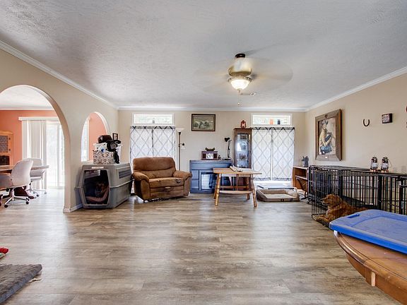 Home and 5 acres 2 miles from I-40. A well maintained home with custom drywall, 2 car garage, hobby/rec room attached to the garage with heating/cooling unit, full bath and storage. 14x10 storage with power. A must see !