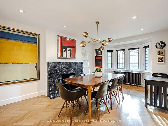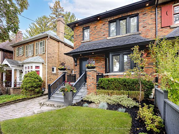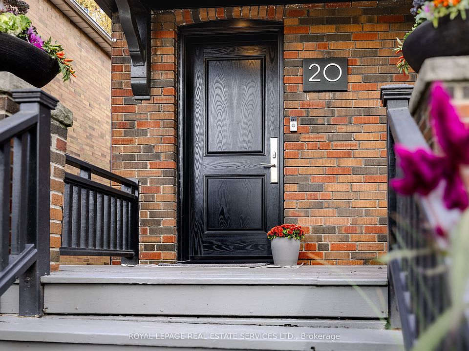 20 Verbena is a bright, fully soundproofed and insulated residence that feels exceptionally wide, offering remarkable form, function, and flow. Rebuilt in 2017, the design unites gallery-inspired modern with a heritage warmth. Expansive windows and a 4' square skylight bathe the interior in natural light. An airy 9' ceiling, solid white oak flooring, gas fireplace with Italian marble surround and custom millwork define the refined open-concept main floor. The designer kitchen impresses with a 10' quartz waterfall island, Blanco dual sink, premium Wolf & KitchenAid appliances, and a bespoke entertainment bar with imported copper sink and coffee garage. Every inch reflects exceptional craftsmanship and curated detail - heated bathroom floors, ambient LED lighting and seamless finishing throughout. Set on an extra-wide lot that lives like a detached, with a lush backyard oasis, fieldstone patio, LED eaves lighting & gas BBQ hookup. Steel & Wood exterior doors. Professional landscaping. Move-in ready! Situated in the prestigious HomeSmith pocket near Bloor West Village, Jane St subway, top schools, Old Mill Ravine and major routes.