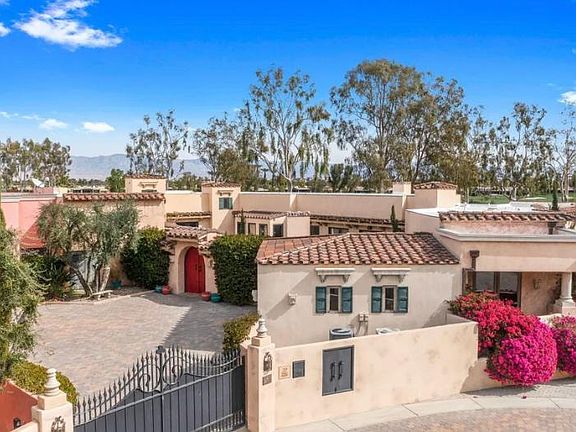 Experience the old-world charm of this Tuscan Villa in the exclusive community of Veneto in Rancho Mirage. Enter through the arched doorway into a dazzling courtyard with pool, spa, fireplace & outdoor kitchen overlooking the majestic southern mountains. With 3 bedroom suites & 4 baths in 4, 658sq ft, this elegant residence features Venetian plaster, handmade wallpaper, travertine, marble & granite, high ceilings, surround sound & custom cabinetry throughout. The graceful living room with its hand carved fireplace & slate wet bar opens to richly fabric upholstered walls of the dining room. The master bedroom suite boasts 996sq ft of pure luxury. Guests will love the casita with private terrace overlooking the piazza & mountains. The gourmet kitchen features Viking appliances & a lovely eat-in area. The cozy family room overlooks the private courtyard & pool. Decorated in warm tones. The property provides a quiet private resort environment.