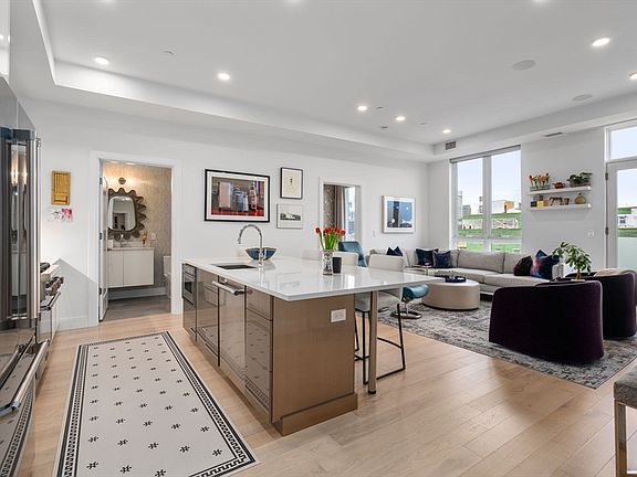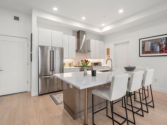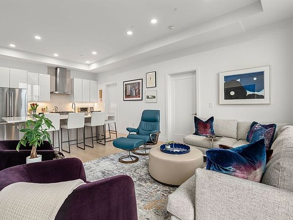 Welcome home to Penthouse 6G at The Ceinture! This custom-designed 2 bedroom + den, 2-bathroom residence offers a private balcony, garage parking space & additional storage. Luxury finishes include custom kitchen cabinetry, Bosch SS appliances, quartz countertops with waterfall edges, built-in speakers, oak engineered HW flooring throughout, and an in-unit w/d. The current owner has tastefully upgraded the home with custom lighting, sophisticated wallpaper, upgraded mirrors, electronic blinds and fully built-out closets as well as a media console. The Ceinture is a 54-unit professionally managed luxury condominium building newly constructed in 2021. The building offers a concierge, full fitness center, a club room with a catering kitchen and a 2,000+ sq ft roof deck with several outdoor seating areas and gas grilling stations. Ideally located steps to The Broadway Red Line T-stop, the best restaurants/shops in South Boston and on the border of both the South End and Seaport District.