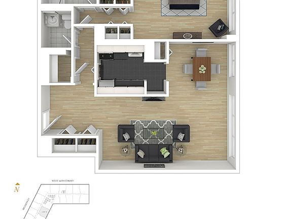 Spacious one bedroom in the heart of Lincoln Center and close to Central Park. Features an open kitchen with black granite counter tops, stainless steel appliances, marble bathrooms, and beautiful bamboo flooring.