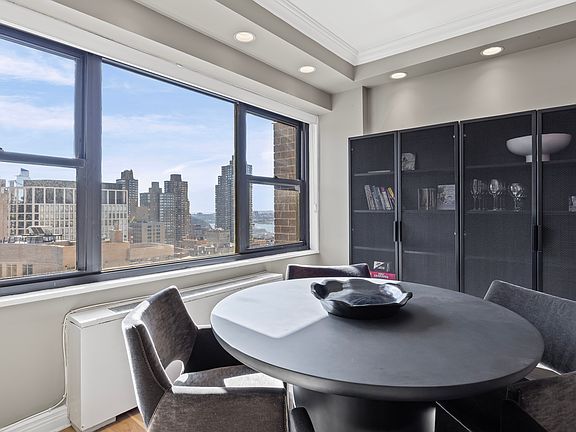 Perched high on the 36th floor of one of Manhattan's most celebrated condominium residences, this beautifully furnished home embodies the essence of sophisticated New York living. The moment you step inside, you're greeted by wide-plank hardwood floors, warm natural light, and sweeping southern views that stretch toward the river. Every room has been elegantly curated; refined yet comfortable, stylish yet livable.