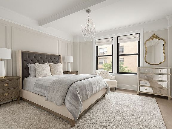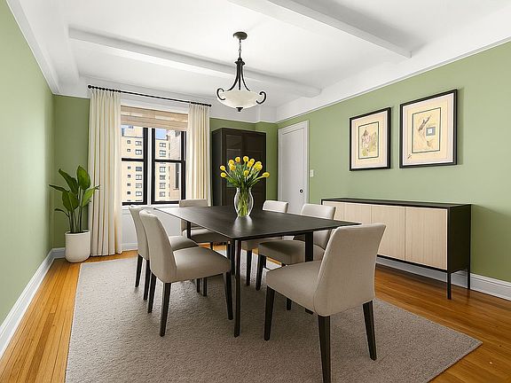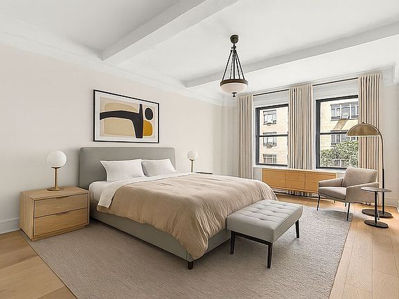 Welcome to 20 West 84th Street, Apartment 5D. This home boasts a flexible layout that can easily be converted to a three bedroom. The gracious foyer with a coat closet invites you into a large-scale, north east facing living room with high, beamed ceilings. The formal dining room leads you to the kitchen and a large staff room / home office with two closets. The windowed kitchen is outfitted with a dishwasher, pantry, and separate service entrance. The apartment boasts an in-unit washer/ dryer. The two bedrooms are located down a hallway off of the living room. The primary bedroom has an en suite bath and the secondary bedroom has a full bath just across the hall.