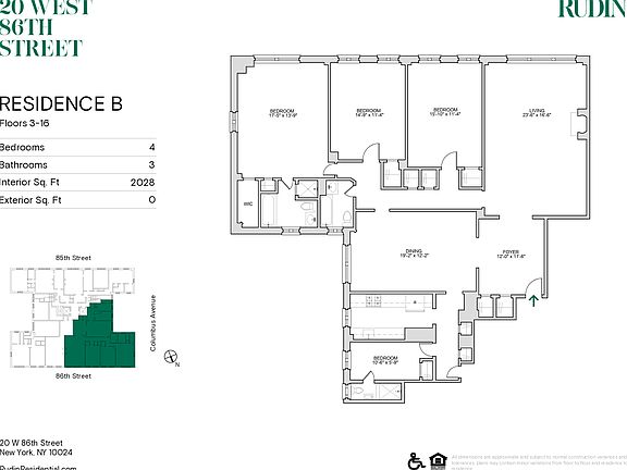 Spacious, 4 Bedroom, 3 Bathroom home, apartment 9B features: