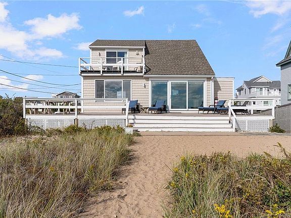 A Quonnie gem nestled along the shoreline of West Beach in Charlestown, this oceanfront cottage will astound you with the sounds and scenes from the Atlantic, only steps from the front door. Walk through the entry and you are engulfed by the ocean views and the warmth of the south facing façade towards Block Island. The home has an open concept first floor with a generous dining area that spills over into a casual living room with vaulted ceiling and a gas fireplace all topped off with ocean views. There is one bedroom on the lower level with three additional bedrooms upstairs with a shared bath. The outdoor deck flows down to a meandering path through the dunes to a sandy beach, which is only steps away from the home. Three of the four sides of the West Beach Association offer a playground of beach, boating/kayaking/fishing, and a sanctuary of conservation. Let this cottage be your special place for future experiences of privacy, recreation, entertainment, family, and pure relaxation for generations.