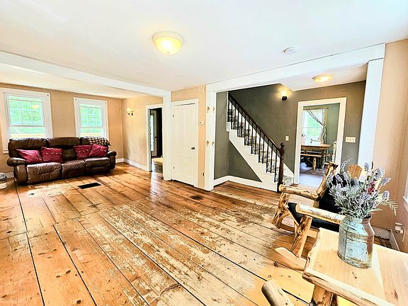 OPEN HOUSE SUNDAY JULY 2nd from 10am to 12pm. Charming country home with 3 bedrooms and 3 baths is bordered by the Fair Brook with an excellent swimming hole just yards away & bordering 1000+ acres of State Forest . The Townshend Lake and recreation areas are your neighbor to the north and east with beach and picnic access about ¼ of a mile down the road. In the winter, multiple ski mountains are within 30 minutes drive. The expanded Cape style home has rustic Farmhouse features like wide pine floors and soapstone counters with many newer updates including metal roof, Thermopane windows, radiant and hot water baseboard heat off a Bureaus boiler, 200 amp power service and home generator. The second floor has 2 bedrooms and en suite bath. On the main floor, an additional den and full bath as well as mudroom, laundry, formal dining room and good sized kitchen. There is also a front and brand new back deck of this main level. The lower level has a full 2nd kitchen, 3rd bedroom, Living room/family room and is easily an in-law/income space with interior access and private back entrance. Artisan well w/new pump and properly maintained 1000 gal septic system. Don’t miss this move in ready home in a great location at $249,000.00!