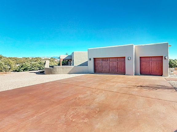 This stunning home, nestled in the La Serena Subdivision of Santa Fe’s Northwest Quadrant, offers the perfect blend of comfort, style, and stunning natural beauty. Sitting on 2.67 acres, it provides incredible views of the Sangre de Cristo Mountains and the Santa Fe Ski Basin. A charming walled courtyard greets you as you enter, leading into a spacious, well-appointed interior. The home features 3 bedrooms plus an office, and 2.5 bathrooms. The living room is designed for cozy gatherings with a Kiva fireplace and striking high beamed ceilings, T&G, and viga accents. The elegant plaster walls and tiled floors throughout add to the home's refined appeal. The kitchen is equipped with granite countertops, a tiled backsplash, and upgraded stainless steel appliances. All bathrooms have been thoughtfully upgraded to offer a fresh, modern feel. The owner’s suite is a true retreat, featuring a Kiva-style fireplace and direct access to a private outdoor patio for ultimate relaxation. The three-car garage is finished with epoxy floors for a clean, polished look. In warmer months, the home is efficiently cooled by ductless mini-split systems, which also provide heat alongside the radiant heating system, ensuring comfort year-round. This home combines Santa Fe’s timeless charm with modern amenities, making it the perfect sanctuary for anyone seeking both tranquility and style.