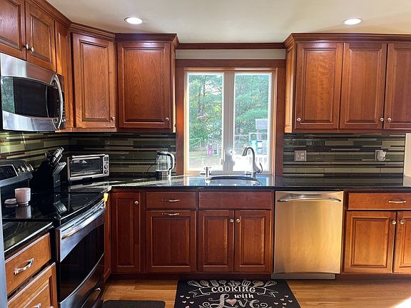 This beautiful home offers a convenient Cul-de-Sac location near the center of town. The home has been updated, expanded and features lots of spacious living area. The lovely open concept kitchen was renovated with new cabinets, granite counters, S/S appliances, hardwood floors and both bathrooms were also fully renovated. A cathedral ceiling family room with a cozy fireplace and hardwood floors is a wonderful place to gather to create new memories together. A 2 car garage and 2nd floor which offers 430 sqft of living space is currently used as the Primary bedroom, office & exercise room, it was added in 2013. The home features 3 bedrooms and a few additional rooms that can be used as the new owner sees fit - home office, study, playroom, craft room, etc... More entertaining space on the composite deck, additional patio and heated inground pool are more features to enjoy, as well as the acre property. Don't miss your opportunity to make this fabulous property your HOME !!