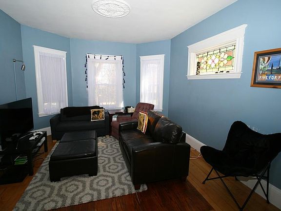Available July 1, this two bedroom apartment in Teele Sq. balances classic Somerville charm with many recent updates. Only 1/2 mile from Davis Sq (per google maps) you'll look forward to coming home whether you commute by public transit or by car. With heat, hot water, cooking gas & laundry included, this unit offers convenience at great value. Updates include some newer flooring and some refinished original, newer windows, updated bathrm & kitchen. Classic style details include ornate woodwork on living/dining pocket door, woodwork around pantry shelves, ceiling medallions in living/dining rooms & hardwood floor design. Eat-in-kitchen offers gas range/oven, dishwasher, pantry w/fridge & microwave. Dining rm has built-in closet & ceiling fan. Living rm features stained glass window plus bay wndws. Black & white honeycomb bathrm tile, fully tiled tub & 4 light vanity. Pets negotiable. Garage parking w/remote additional $250/mo. First, last, security deposit & broker fee req. No smoking