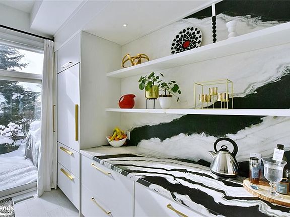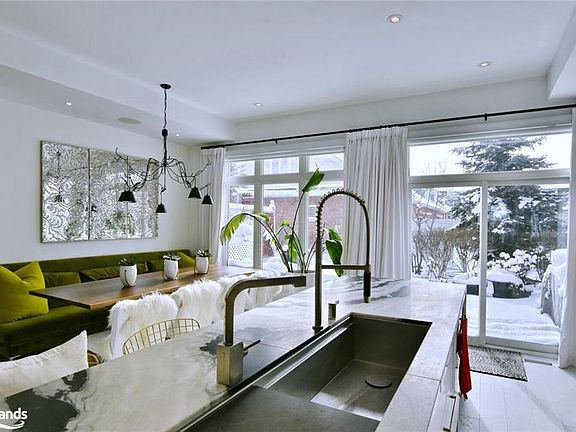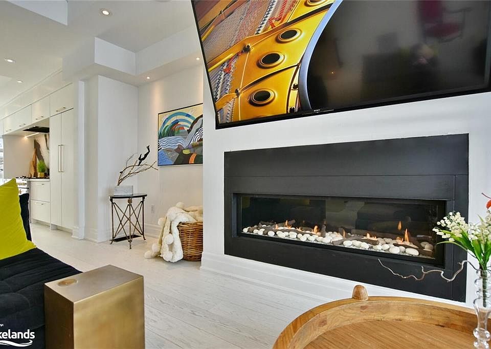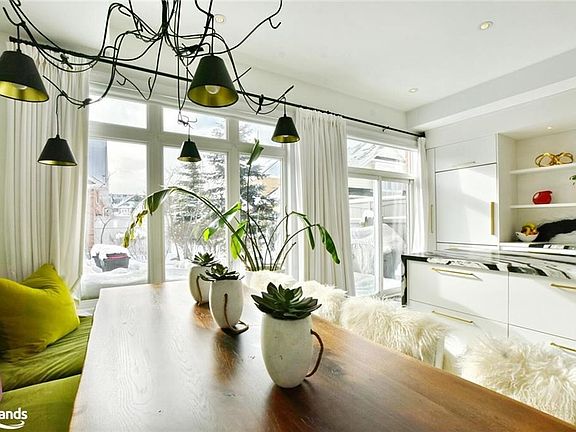 Designer luxury shipyards waterfront show house features on the cover of "2020" OUR HOMES MAGAZINE offered for the first time for the 2023 ski season. Waterfront townhouse in historic downtown Collingwood overlooking the Collingwood Harbour over 3700 sq.ft of luxury living, glass walls throughout, 5 bedrooms, 4.5 baths, 4 fireplaces (2 gas/2 electric), 5 smart TVs including 85" in main living area. Gourmet kitchen featuring La Cornue gas range, European appliances, 2 dishwashers, AEG built in steam oven, AEG built in expresso maker, wine fridge, 20 foot marble island, marble counter top and backsplash, custom French chandelier and dining table for 10. Master suite with fireplace, custom walk-in closet and luxury ensuite. Two waterfront balconies, in-house elevator, underground parking with 4 private parking spaces and lots of visitor parking. Top floor and lower level suites have separate area for kitchen items, mini fridge and microwave. Luxury living, with water and mountain views, perfect for family gatherings and making ski season memories in 2023. Available from December 15, 2022 to March 31, 2023. Steps to Historic Downtown Collingwood's Loblaws, Starbucks, dining and shopping. Please view Virtual Tour under multi media and get ready to make next ski season special!! 2022-10-27