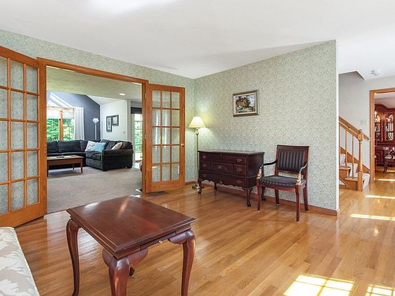 Colonial home located in a neighborhood, spacious, well maintained and updated home has 4 bedroom, 2.5 bathrooms. Welcoming entrance & foyer with gleaming hardwood floors. Living room w/hardwood floors and French doors that open to large family room with vaulted ceiling, fireplace, skylights & great natural light. Formal dining room with hardwood floors & chair rail. Kitchen with open floor plan has island, 4 yr ss appliances, custom cabinets, dining area, tile floor and sliders that lead to patio. First floor laundry & half bathroom. Second floor with 4 bedrooms & 2 full bathrooms. Master suite has private updated bathroom & walk-in closet. Lower level with large bonus room w/built-in custom shelves, sink, refrigerator and eating area. Additional storage & utility room. Walk out from lower level. For outside living ~ patio with trellis and private back yard. Town Water & Sewer. Central Air. Two car garage w/side entry and Wifi garage door openers. Close to Rte 290 for commuting.