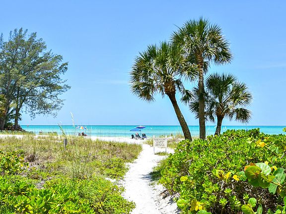 This 2 BD/2 BA ground floor condo, corner unit, gives you direct access to 1,100 feet of Siesta Beach's sugar white sand. It is the north end of the beach with no public beach access. The views of the Gulf of Mexico, Big Pass and South Lido Beach are extraordinary.