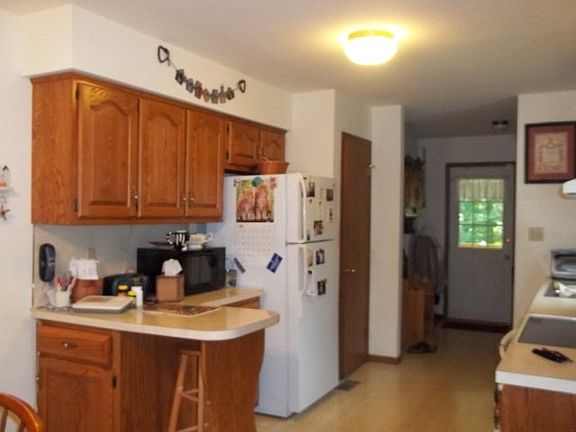 Private Setting - .55 acre lot with plenty of shade trees. This well cared for ranch home was built in 1997. Brick & vinyl exterior. Relax on the 3 season porch. Laundry on first floor - 3 bedrooms & 2 baths (master). Walk out basement to daylight. Wall A/C - appliances in kitchen just 2 years old. Paved driveway. Wired for back up generator.