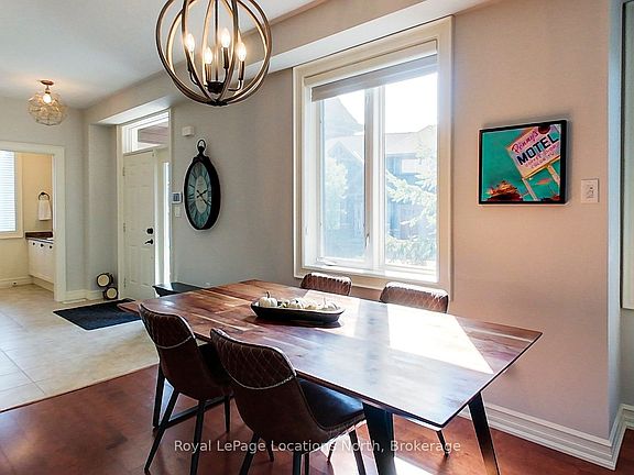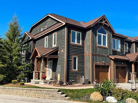 This delightful 4 bedroom, 3 bath end unit townhome in sought after Tanglewood Estates offers the perfect blend of style, comfort, and location.With oversized windows throughout, natural light pours into the open-concept living and dining spaces, creating a warm and invitingatmosphere. The main floor features beautiful hardwood floors, a gas fireplace for cozy evenings, and a walkout to the large 12 x 20 deck withan updated privacy fence and natural gas BBQ hookup -- ideal for entertaining. The kitchen has been thoughtfully updated with granitecountertops, ample cabinetry, undermount lighting, a large island, and a gas stove. A multi-room sound system with speakers on the main floor,backyard and primary suite, along with a smart-home alarm system, add modern convenience. A powder room with stacked laundry completesthe main level. Upstairs, the spacious primary suite boasts a 4-piece ensuite, while three additional bedrooms and another full bath provideplenty of room for family, guests, or even a home office. The basement offers excellent potential with a rough-in for a fourth bathroom. Outside,the home shines with its curb appeal -- an interlock walkway, paved driveway, manicured gardens, and a covered front portico framed by maturetrees offering privacy. A large single-car garage with inside entry adds functionality. Tanglewood Estates residents enjoy access to an outdoorheated pool, nearby golf, and abundant visitor parking. Step outside to explore the Georgian Trail, beaches, marinas, restaurants, and shops - alljust minutes from Blue Mountain, ski hills, and Historic Downtown Collingwood. This is carefree, low-maintenance living at its best in one ofCollingwood's most desirable communities!
