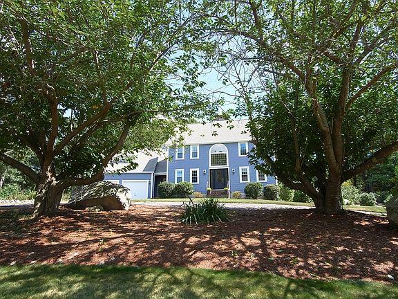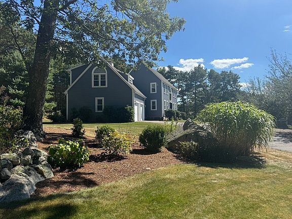Welcome to Foxboro's Desirable Angle Tree Estates! This home rests on a beautiful, professionally landscaped lot w/circular drive for ease & extra parking. At the front entrance, you are greeted by a vaulted & bright Foyer coupled w/a brick, double-sided fireplace creating warmth & beauty in the center of this home. 1st floor offers open floor plan w/hardwood floors, exposed beams, ample windows & easy flow between LR, Kitchen & Dining area. Sliders off kitchen lead to a large deck for additional entertaining space or simple peace & quiet. An updated 1/2 BA & Mudroom w/access to garage & separate entrance completes the 1st floor. The 2nd floor w/catwalk over looking the kitchen has a Laundry, Full Bath & 2 BRs w/hardwood floors & double closets. The large Primary Suite w/vaulted ceiling, private balcony, remodeled Bath including a soaking tub, heated floor, tiled shower & double vanity finishes the 2nd floor. Convenient to major highways, trains, Gillette Stadium, restaurants & more.