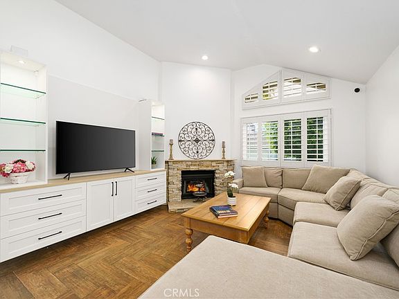 Step into this light and bright home featuring a spacious living room with soaring cathedral ceilings that create an airy, open ambiance. A custom-built entertainment center anchors the space with style and functionality, perfectly complemented by a cozy fireplace that adds warmth and charm.