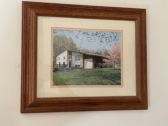 Immaculate and lovingly maintained contemporary split with a mid century modern flair! Situated on dead end street features living room & dining room with vaulted ceiling/ dining room with slider to deck/eat in kitchen/3 bedrooms/partially finished lower level offers 2 additional heated rooms which include family room and office or craft room/in addition the unfinished portion of the basement serves as a workshop and generous storage.Many updates include roof/ windows/electric/Buderus boiler/central A/C/ level lot/