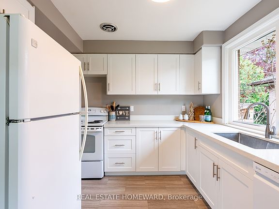 Over 2000 Sq feet of Living Space in this Renovated detached Bungalow Home in a well established Community. Spacious layout for 2 families to live in. The main level has 1049 sq feet of living space with 3 bedrooms. Upgrades Completed: Furnace in 2025. 2024 = pot lights, crown molding, and Professionally painted. Main floor windows in 2018, Roof Approximately 7 years old. Updated electrical (2019). The Finished Basement apartment with over 800 sq feet of living space with 2 bedrooms & windows in every room was renovated in 2019. It offers a private side entrance with steel door, stylish vinyl flooring & has the plumbing ready for a future washer & dryer. Nestled on a mature lot with a Cedar shed for extra storage. Enjoy 2 Separate patio areas & fenced yard. Owned and Cared for by one Family since 1966! Close to French Immersion Schools, Elementary & High Schools. 5 minute walk to parks & playgrounds. Easy access to Go train, Public transit, Hwy 2 & Hwy 401.