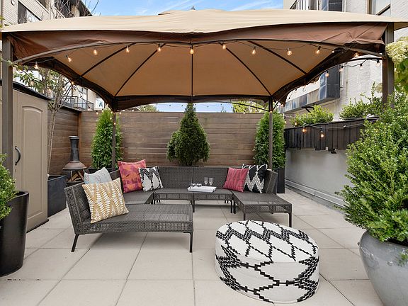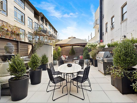 Private oasis in Park Slope! Apartment 2H is a rare gem that features a lush, wraparound terrace larger than most backyards. This wonderful, 1,000+ square foot, terrace oasis is set up for ultimate comfort, whether you're lounging on an outdoor sofa under the softly-lit canopy, or at the grill entertaining guests. A six-burner, piped natural gas Weber BBQ accommodates easy alfresco dining. Imagine friends popping by for an impromptu outdoor yoga session and staying for a relaxing brunch among greenery. Step inside apartment 2H and enjoy the ambiance of a very quiet, desirable corner/end-unit apartment well-appointed with thoughtful, luxurious elements throughout. This two-bedroom, two-bathroom condo boasts wide-plank maple floors and high ceilings. Oversized double-glazed windows, indulgent soaking tubs, a Samsung washer and dryer, and an ADT alarm system with smoke and fire monitoring are just a few of the many touches that enhance the living environment. A large built-in fireproof safe is tucked away in one of the home's five spacious closets, all of which are custom-designed to maximize the use of space. The bright living area is highlighted by floor-to-ceiling bay windows, allowing sunlight to fill the open living room and kitchen. Any chef will delight in the kitchen's high-end finishes, from the Calacatta marble countertops, backsplash and wall, to the Wenge cabinetry, soft-close drawers and high-end appliances, which include a generously-sized side-by-side 36" Sub-Zero refrigerator, Miele dishwasher, Samsung gas smart-range and built-in GE Profile convection/microwave oven. With a full pantry/closet off the kitchen, there is no shortage of storage! Set at opposite ends of the apartment is the master suite, guest bedroom and guest bathroom, creating privacy and relaxed living. The king-size master suite presents wall-to-wall, floor-to-ceiling windows adorned with custom automatic Hunter Douglas "Silhouette" shades and blackouts, as well as two custom-fitted closets. The ensuite bath boasts a gorgeous Carrara marble vanity and trough-style double sink, a Kohler soaking tub and separate shower encased in glass. Floors are imported Italian marble mosaic and radiantly heated. The light-filled guest bedroom with a spacious closet can fit a queen-sized bed, and the guest bath is beautifully styled with a deep soaking tub and Carrara marble vanity. 200 16th Street is a modern 5-story, 32-unit elevator building, offering residents a common roof deck with Manhattan views, video-controlled entrance and 24-hour gym with new, state-of-the-art equipment. This boutique building is conveniently located just two blocks from the R train and minutes from the F and G at 7th Ave or 15th St for quick commutes. It sits right in the heart of fantastic restaurants, bars and shops. Prospect Park is only 3.5 blocks away. The monthly fees are low with a 421-a tax abatement in place until 2033. A separately deeded, indoor-garage parking space in the building is available for additional purchase.