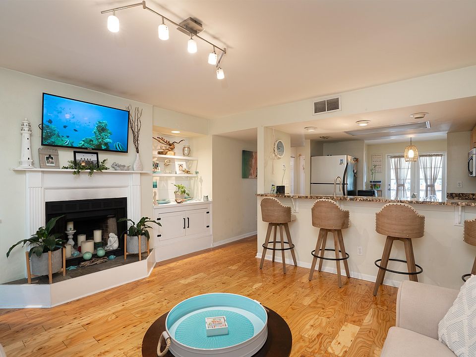 Hands down the best "bang for your buck" on St.Augustine Beach. Come see what you can buy for under $350K in one of St. Augustine’s most intimate communities - Anastasia Oaks. This 22 unit complex is located a block off of the main strip giving you convenient access to everything St. Augustine Beach has to offer while also providing the peace and quiet you desire. You'll enter this highly desirable first floor unit through a private courtyard. Once inside, you'll find real pine floors and smooth ceilings throughout. To the left is a dining area with French Doors leading to the front courtyard giving you the opportunity to incorporate this unique outdoor space. The kitchen has been updated with maple shaker cabinets, granite countertops, slate tile floors, and stainless steel appliances. The kitchen opens up to the main living area where you’ll see a fireplace (currently capped) with built-in cabinets adding to the unit's abundance of storage. The unit also has a screened-in back patio leading to the backyard. While the yard isn't huge, there is still plenty of space for a small garden for those of you with a green thumb. The guest room offers the feeling of having privacy with an en suite bathroom due to a connecting pocket door. The designated laundry room is tucked between the two bedrooms and offers additional storage. The master bedroom features double closets and an en suite bathroom. Anastasia Oaks has just undergone an extensive exterior renovation replacing the old wood siding with much more durable Hardie lap siding, which will last for many years to come. And the location cannot be beat! You’re within a 5 minute walk to the beach, fantastic restaurants, weekly Farmer’s Market, and a only short drive to the downtown historic district. HOA fees cover the pool, clubhouse access, water, sewer, master insurance policy for the complex (including flood insurance), trash collection, cable, and management. The minimum lease term is 30 days...there's a need for furnished 30 day rentals in the area. Although you can't do "short term rentals" you can still cash flow this condo by doing the 30 day rentals while also using it periodically throughout the year. Call today to secure your own piece of paradise!