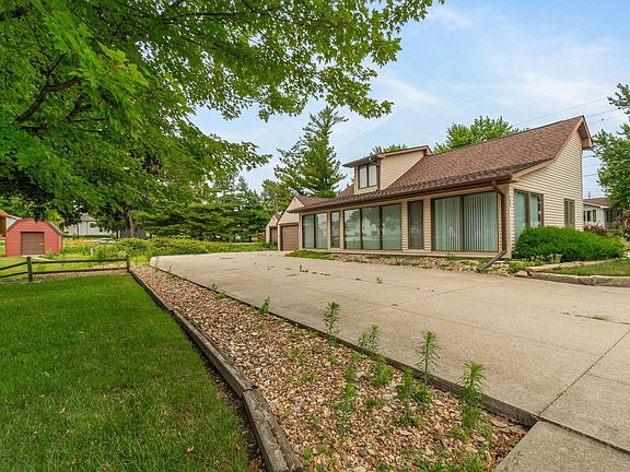 Small town living at its best with an oversized corner lot and modern exterior style. If you love spending time outside, then you're sure to appreciate the amazing yard with storage sheds and even a decorative bridge! Inside, there is a fantastic enclosed porch with terra cotta style tile, a wall of windows, and ample opportunity for enjoying the seasons change from the comfort of your home. A multi-level living room is a unique yet charming feature offering an open staircase that leads to a dormer bedroom/office. The kitchen is in wonderful, updated condition and is just off the main floor laundry/mud room that connects the home and the garage. This home has been well loved and maintained over the years. It's truly a great find!