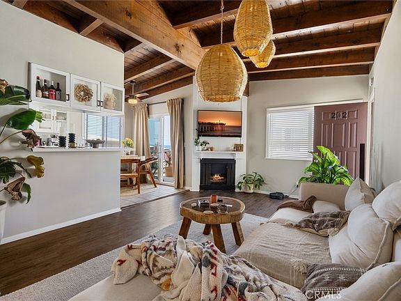 Inside, you'll find hardwood flooring, new countertops, and fully equipped kitchens including a dishwasher, microwave, and refrigerator. Both units feature private balconies, perfect for enjoying ocean breezes and sunset views, and one unit features a cozy fireplace as well. The top unit has a high beam ceiling.