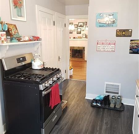 This little gem has so much to offer!! Welcome summer around the firepit in the enclosed back yard or relax on the large covered front porch! Many updates give this home a warm, yet sleek contemporary flair - new lighting fixtures and freshly painted throughout - new flooring in kitchen and baths, vanities have been replaced and the shower is sparkling with new ceramic and glass tile. Spacious bedrooms offer plenty of space for everyone and the first floor boasts formal dining room and living room accented with gleaming hardwood and brick fireplace. Exterior offers a huge variety of perennials and shrubs, off street parking and large storage shed. All accented with the classic white picket fence!