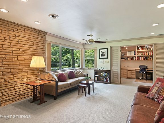 First time on the market in 25 years! This sprawling mid-century ranch is one level living at its best! Incredible, close to town location with an easy walk to train, library, restaurants, shops and award-winning schools. This 3 bedroom, 2 full bath stunner sits on almost a half-acre lot. A covered front patio welcomes you into the home. Beautiful entry foyer with marble floors. Large bright living room with awesome wood-burning fireplace. Home office with built-in desk and bookshelves. Updated kitchen with dining area. Large laundry room/mudroom. Huge family room which opens to a giant three season room. Three large bedrooms, each with amazing closet space. Ensuite full bath in main bedroom. Covered back patio overlooking fabulous park-like backyard. 2 car attached garage. SO good! Don't miss out!